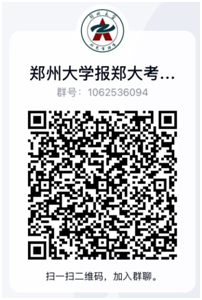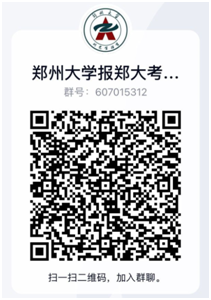 热忱欢迎各位同学报考本校研究生,有意向的同学请用QQ扫下面的二维码加入我校研招宣传联络员创建的“报考郑大考研QQ交流群”,报考郑大相关问题可在群里向学长们咨询,同时考试相关提醒信息我们也会通过QQ群通知。